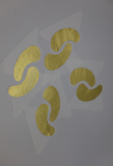 Zastosuj lekki nacisk, aby złoto całkowicie przylegało do skóry. Następnie usuń biały papier podkładowy.